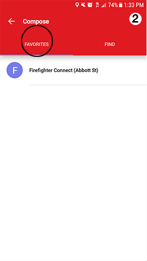 The top row of the FIREFIGHTER CONNECT “chat” screen displays quick links to your fire station(s) and to the fire fighters you connect to most often. If you select your fire station in the top row, you may start a “group text chat’ session with other members of your team. You may also scroll down to view a list of your recent one-on-one chat conversations and activity, restart a previous chat session, or tap the “add chat” icon to start a new chat connection with members of your own station(s) or with other fire fighters. When starting a new chat session, choose who you want to chat with by selecting from your list of "favorites" or tap "find" to search for someone new to contact.