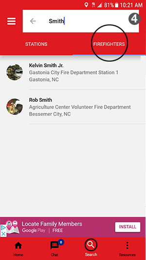 Use the “search” tab to quickly locate members of a specific fire station or to search for an individual firefighter.
